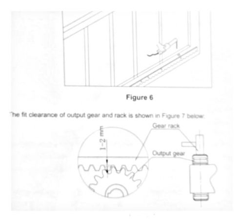 - Manually move the gate (gate should be moved smoothly after motor unlocked) to check whether there is a fit clearance between rack and output gear, as shown in Figure 7.