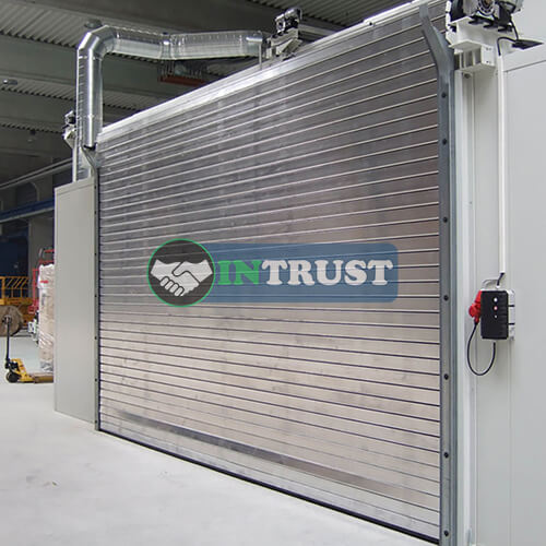 While as per the functions of “InTrust industrial rolling shutter door” can be classified mainly as high speed (PVC) shutter door, windproof shutter and Fire proof Shutter door. Just as their names imply, the high speed shutter door is featured for its fast speed of rolling up and down which could be used in factories of food, chemistry, textile, electronics, freezing, logistics, and supermarket, etc. InTrust Windproof rolling shutter doors are characterised by its strong wind resistance that is applicable in the places near seaside, typhoon zone and so on. Fire rated InTrust integrated shutter doors are used to stop Fire and smoke from spreading to save property and, more importantly and protect lives. InTrust advanced fire Shutter door systems compartmentalise a fire event quickly allowing adequate time for egress from the building.